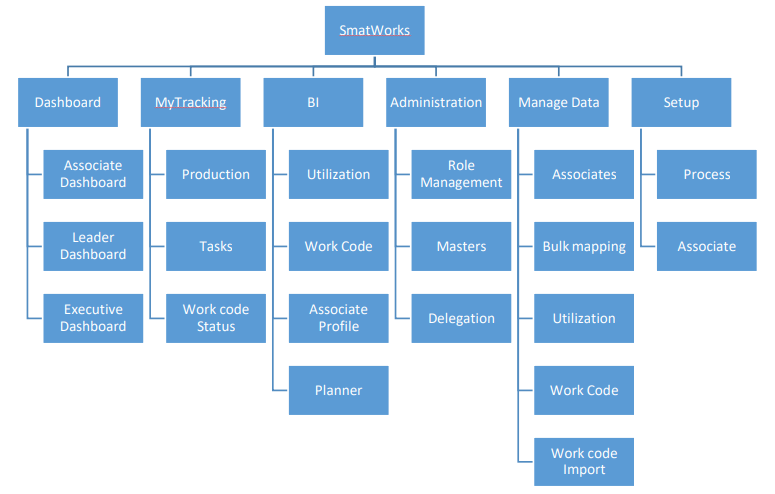 It Should comprises of various modules which enable Work Allocation, Work Flow, Work Tagging/Tracking while providing Analytics & Business Intelligence required for planning, organizing and decision making. It also has SmartTools module which helps in maintaining business critical supporting data (trackers) and to retrieve the information on-demand.