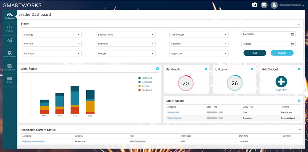 The portal was able to automate the manual work and became a single source to assiging and tracking the tasks, utilization of the resource with ease and at any point of time. The response from users was much more positive then we expected it was able to solve few pain areas of associates relating to their production hours, AUX time etc.
