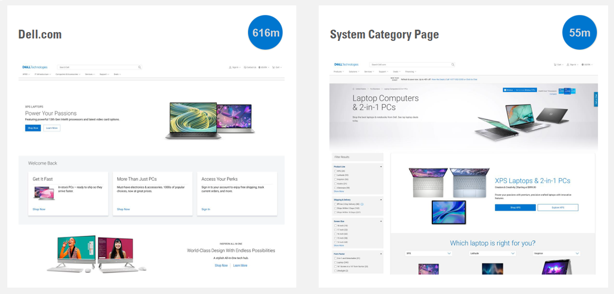 Category page is a sub-page in Dell.com where the products are listed according to their configurations and specifications based up on the user choice.